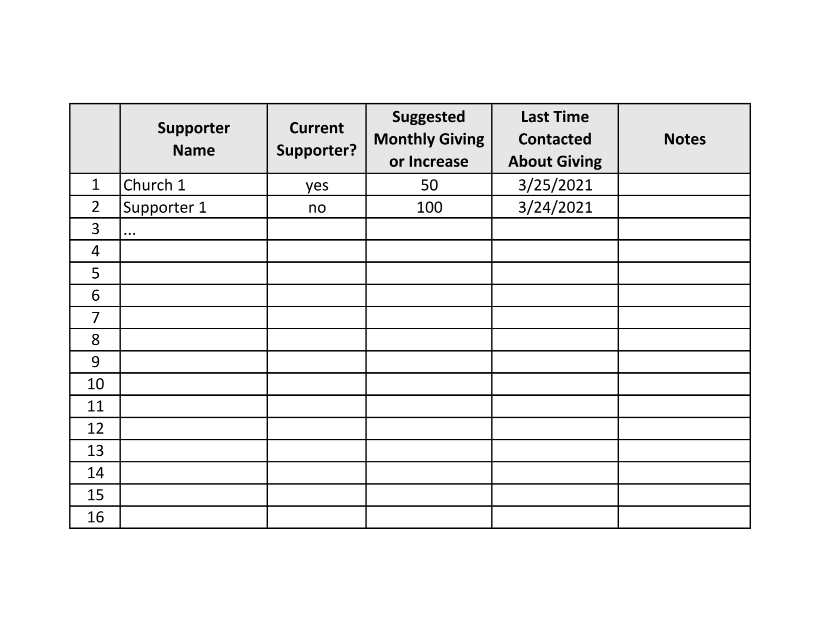 I’ve created an Excel spreadsheet that is specifically designed for missionaries. You can keep track of your supporter’s giving, see your support raised %, record emails and notes, and more.